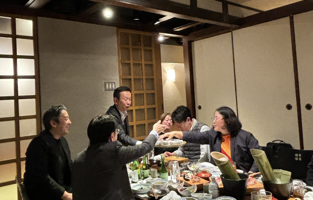 高知の伝統文化「土佐のおきゃく」を体験するため交流会の会場へ移動しました。単なる懇親の場ではなく、この街全体が持つ「心理的安全性の高さ」こそが、肩書きを超えた本音の対話を生み、地域間イノベーションの種を蒔く強力なインフラであることを実感する時間となりました。